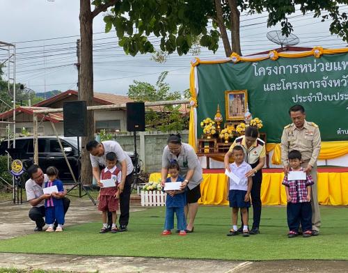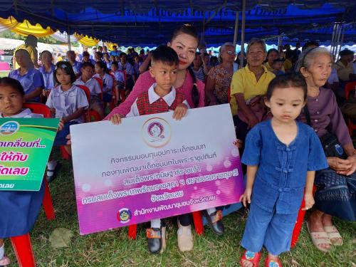 มอบทุนอุปการะเด็กชนบท กองทุนพัฒนาเด็กชนบทในพระราชูปถัมภ์ฯ จำนวน 10 ทุน ๆ ละ 1,000 บาท รวม 10,000 บาท