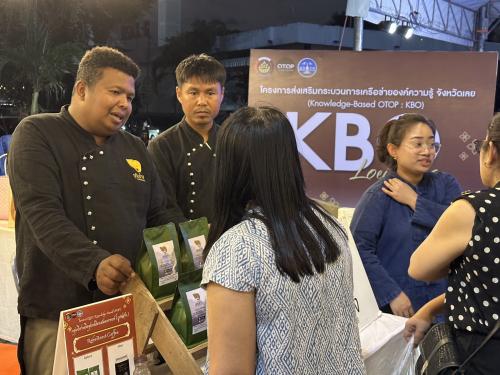นายประยูร อรัญรุท รองผู้ว่าราชการจังหวัดเลย กล่าวว่า จังหวัดเลยให้ความสำคัญกับการยกระดับผลิตภัณฑ์ชุมชนอย่างเป็นรูปธรรม โดยการนำโครงการ KBO ที่เน้นการใช้องค์ความรู้และนวัตกรรม มาบูรณาการร่วมกับโครงการพัฒนาผลิตภัณฑ์ OTOP กลุ่มปรับตัวสู่การพัฒนา (Quadrant D) เพื่อเสริมสร้างความเข้มแข็งให้แก่ผู้ประกอบการในทุกระดับ