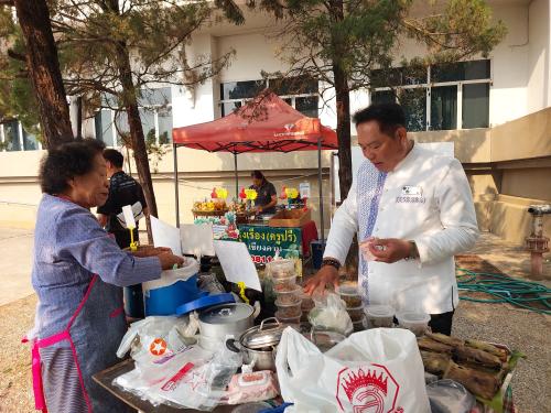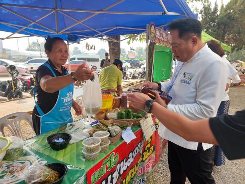 ดร.ณัฏฐพล หัวเรือใหญ่แห่งการพัฒนาชุมชนจังหวัดเลย เดินเท้าสำรวจตลาดทุกซอกทุกมุม ตั้งแต่โซนของกินพื้นถิ่นรสเลิศ ไปจนถึงโซนผ้าทอและของใช้ที่สะท้อนภูมิปัญญาอันประณีต ท่านไม่ได้เพียงแค่เดินผ่าน แต่ได้แวะทักทาย ให้กำลังใจ และร่วมพูดคุยกับผู้ประกอบการ OTOP อย่างเป็นกันเอง สร้างความปลาบปลื้มและรอยยิ้มให้กับพ่อค้าแม่ค้าตลอดเส้นทาง