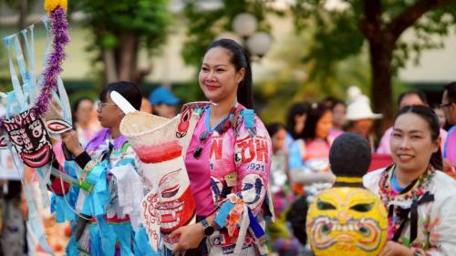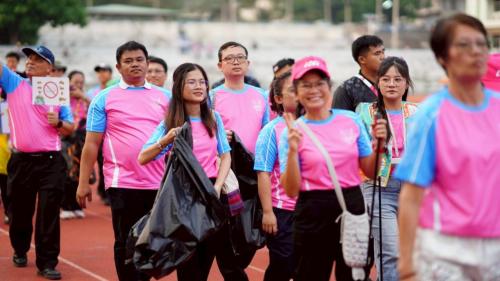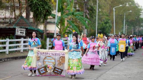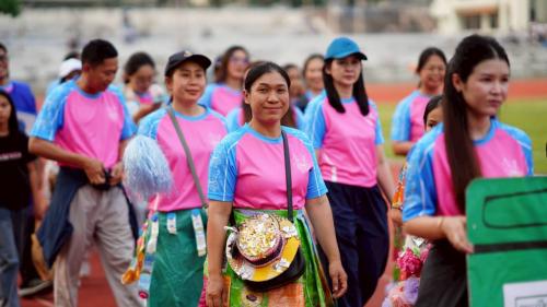 ท่ามกลางบรรยากาศอันยิ่งใหญ่ สำนักงานพัฒนาชุมชนจังหวัดเลย ในฐานะสมาชิก "คณะสีฟ้าชมพู" ได้สร้างความฮือฮาด้วยการนำขบวนโดย นายประยูร อรัญรุท รองผู้ว่าราชการจังหวัดเลย พร้อมด้วย ดร.ณัฏฐพล ศรีพันธุ์ พัฒนาการจังหวัดเลย ซึ่งนำเหล่าข้าราชการและเจ้าหน้าที่จาก 14 อำเภอ เดินเข้าสู่สนามอย่างภาคภูมิ ไฮไลต์ที่ถูกกล่าวขวัญถึงที่สุดคือ "ขบวนพาเหรดแฟนซีรีไซเคิล" ภายใต้แนวคิด "เมืองเลย เมืองสะอาด" ที่นำวัสดุเหลือใช้มาประดิษฐ์เป็นชุดสุดวิจิตร บรรจงสร้างสรรค์โดยฝีมือของบุคลากร พช.เลย เพื่อรณรงค์การจัดการขยะและรักษาสิ่งแวดล้อม ซึ่งสอดคล้องกับวิสัยทัศน์การพัฒนาจังหวัดที่ยั่งยืน